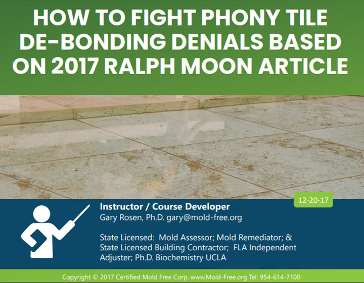 How to Fight Phony Tile De-Bonding Denials Based on 2017 Ralph Moon Article